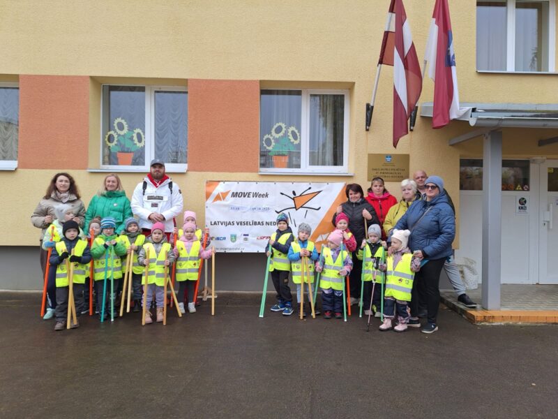 Latvijas Vesleības sporta nedēļa 2025. Nūjošana kopā ar vecākiem.