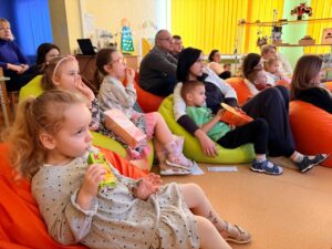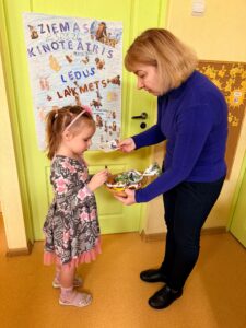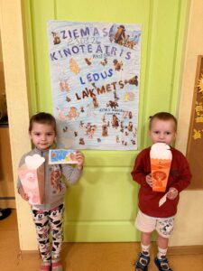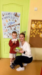 23. janvārī 11.grupā “Saules zaķītis” norisinājās Ziemas kinoteātra pasākums, kurā bērni kopā ar vecākiem skatījās multfilmu “Ledus laikmets”. Bērni iepriekš gatavoja kino biļetes un afišu, bet ieeja kinoteātrī notika ar īpašu maksu – 1 konfekte, kas bērniem sagādāja daudz prieka un radīja īstu kinoteātra noskaņu. Skatīšanās laikā bērni ērti iekārtojās sēžammaisos, baudīja popkornu un sulu. Pēc multfilmas bērni aktīvi atbildēja uz jautājumiem par redzēto, dalījās iespaidos un kopā ar vecākiem saņēma žetonu “Labākais skatītājs”. Noslēgumā bērni zīmēja savu mīļāko multfilmas varoni, attīstot radošumu, iztēli un emociju izpausmi. Īpaši vērtīgs bija tas, ka aktivitātē piedalījās arī vecāki, radot siltu, drošu un vienojošu vidi, kurā bērni jutās pārliecināti un laimīgi. Ziemas kinoteātris kļuva par skaistu kopīgu piedzīvojumu, kas stiprināja bērnu, pedagogu un ģimeņu savstarpējo sadarbību. Pateicamies skolotājām Oksanai Masānei un Solvitai Trimalniecei par pasākuma organizēšanu.